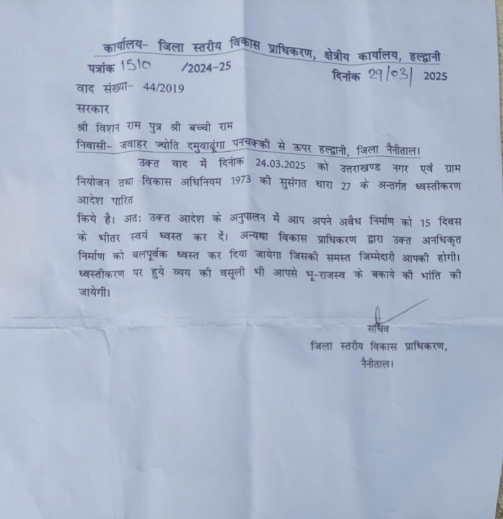 देखें ध्वस्तीकरण आदेश का पत्र
